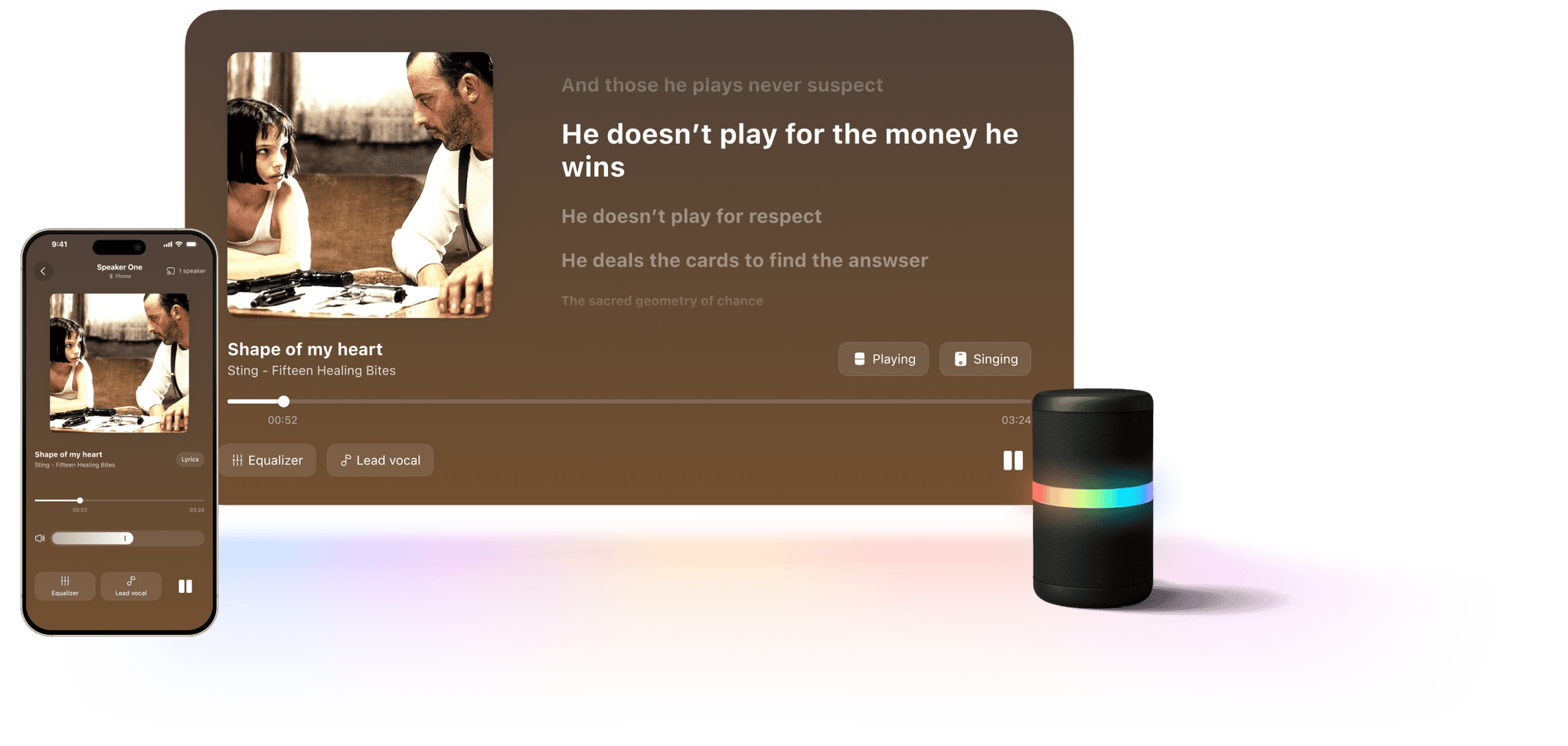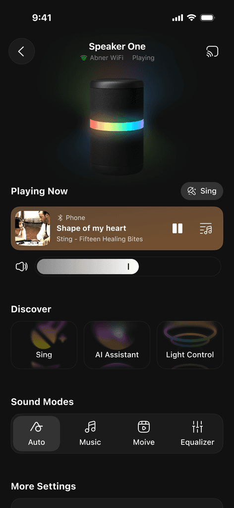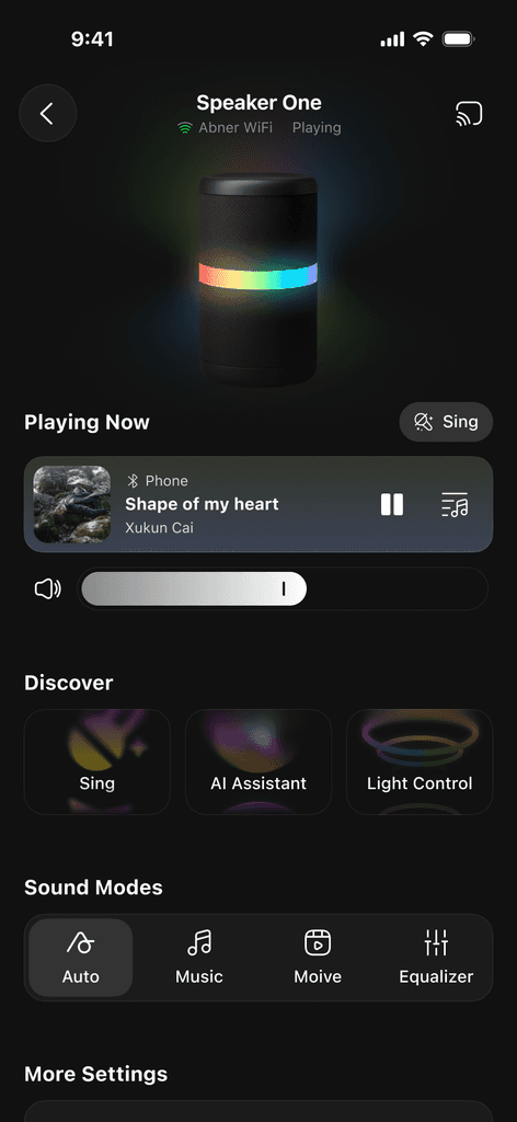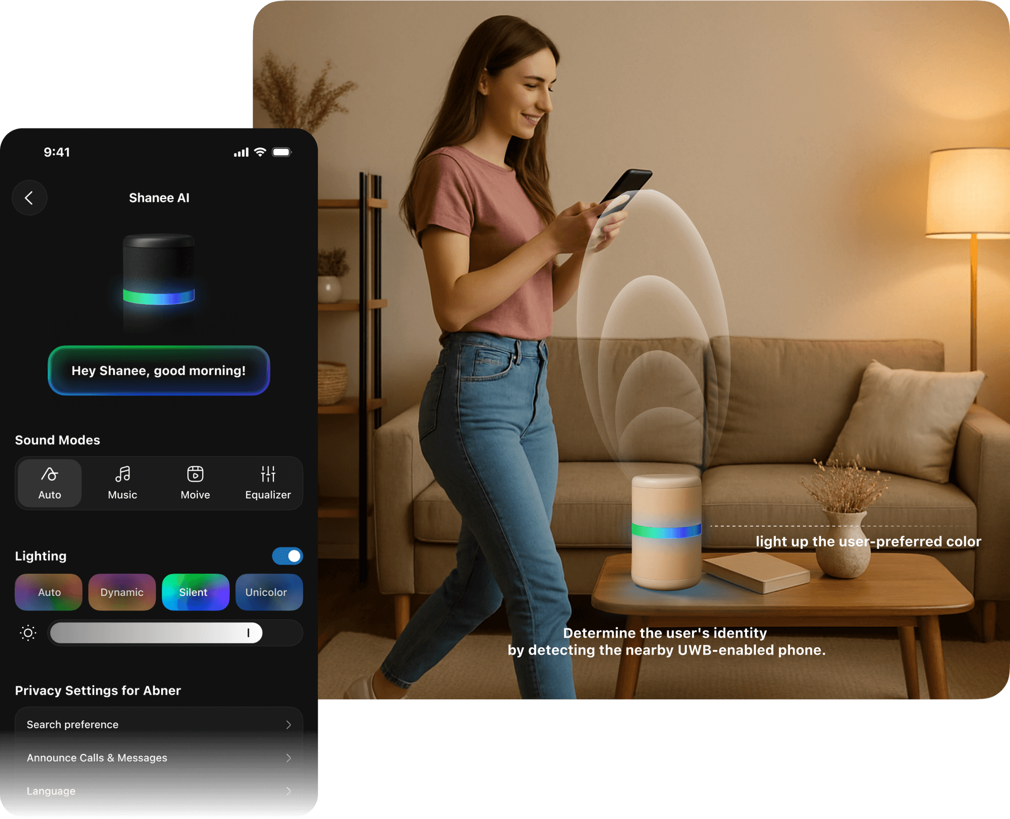 When the user approaches, the speaker automatically light up the user-preferred color.